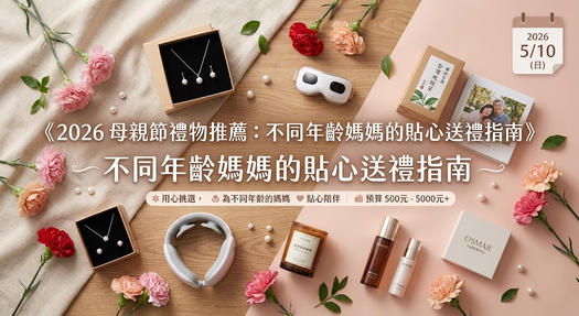 2026 母親節禮物怎麼挑?整理 40、50、60 歲不同年齡媽媽的 20 個送禮選擇,從輕珠寶飾品、療癒小家電到開運水晶手鍊,搭配 500 到 5000 元預算清單,讓你一次找到最對味的心意。