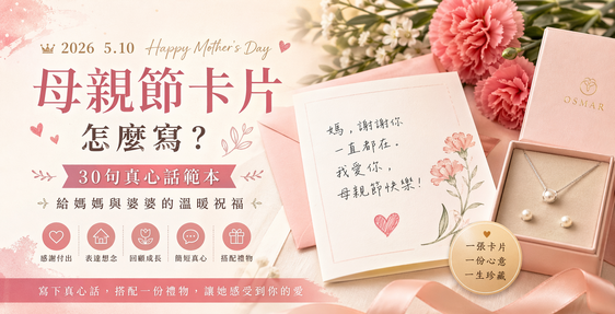 2026 母親節卡片寫什麼?整理 30 句真心話範本,從感謝、想念、成長到不善表達者適用,特別收錄寫給婆婆的溫和得體版,讓你不用絞盡腦汁也能寫出媽媽會珍藏的卡片。