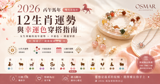 2026 是丙午雙火赤馬年,12 生肖運勢一次看懂。整理各生肖事業、財運、感情走向,搭配幸運色穿搭建議與全年 12 個月重點提醒,讓你在變動的一年裡穩穩接住好運。