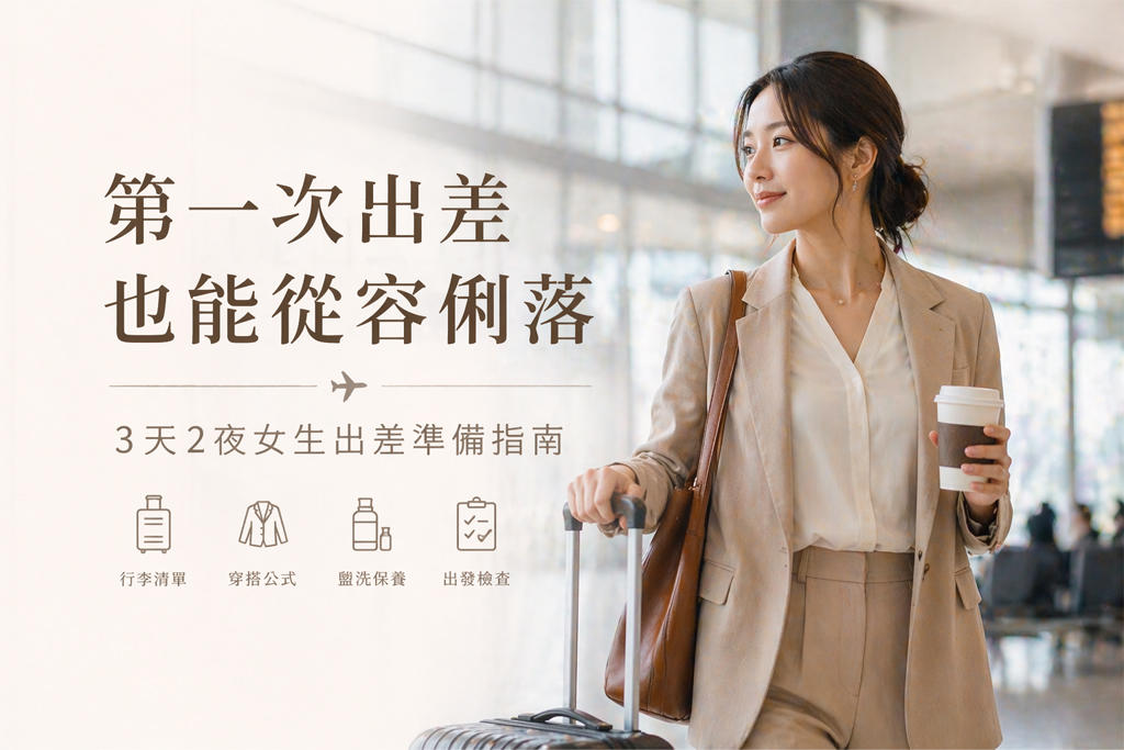 如果你也正準備第一次出差,或者是已經出差過但每次都手忙腳亂的你,這篇文章想幫你把流程徹底理清楚。出差準備不是「把平常用的東西塞進行李箱」那麼簡單——你要同時兼顧商務形象、舒適機能、時間效率、還有突發狀況的應變能力。這份清單整理了 3 天 2 夜女生出差最實用的準備重點,從行李箱怎麼選、服裝怎麼搭、配件怎麼帶、到會議前的最後檢查,一步一步陪你走過去。