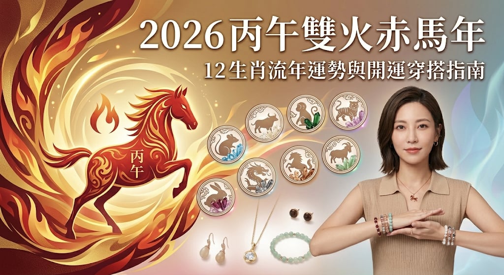 2026 是丙午雙火赤馬年,12 生肖運勢一次看懂。整理各生肖事業、財運、感情走向,搭配幸運色穿搭建議與全年 12 個月重點提醒,讓你在變動的一年裡穩穩接住好運。
